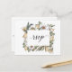 Cette belle carte postale botanique blanche RSVP présente un cadre floral aquarelle avec des fleurs blanches et des feuilles de palmiers séchés sur un arrière - plan de blanc éclatant. Les mots "RSVP" et "Kindly Response" sont dans une police de style calligraphie à la main. L'arrière de la carte postale contient les informations sur la carte de réponse. Cette conception est en coordination avec les autres produits de la collection Mariage Botanique Blanc.