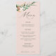 Beau décor de table de menu mariage pour partager votre journée spéciale avec vos invités. Cette carte de menu imprimée en papier classique est parfaite pour décorer votre espace de réception ou de cérémonie, offre suffisamment d'espace pour décrire chaque parcours, et a des tons pastel doux et vert floral moderne d'aquarelle dans les tons pêche, blanc, ivoire crème, sauge et un vert plus profond. Cet événement personnalisé fournit des coordonnées accessoires avec notre collection de papeterie botanique et de papier d'événement.