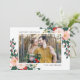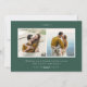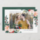 Souhaitez à votre famille et à vos amis des vacances heureuses avec notre carte photo de vacances festives Botaniques d'hiver. Le carte photo de vacances dispose de votre photo préférée sur le devant encadré de blanc avec un bouquet de fleurs rouges et roses peintes avec des feuilles verts et des accents d'or. Personnalisez le devant en ajoutant un message d'accueil personnalisé et votre nom. Le dos contient deux photos de plus encadrées par des bordures blanches et carrés et de l'espace pour un message personnalisé avec un arrière - plan vert forêt.