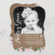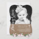 Ce carte photo Baptism Invitation dispose d'une disposition élégante de pivoines roses douces, d'une croix de dentelle, arrière - plan burlap, et le nom de votre enfant dans une jolie police de script.