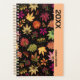 Un joli motif botanique pour ceux qui aiment le feuillage d'automne avec des feuilles d'automne dessinées à la main en marron, jaune et vert sur noir. Customisez l'année et la date !