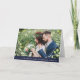Cette élégante carte de remerciements de mariage est dotée d'un cadre géométrique moderne et argenté avec une couronne de feuilles vertes sur un arrière - plan bleu nuit, avec votre photo de mariage personnelle.