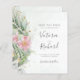 Beau budget Économisez la carte datant avec l'aquarelle rose vif, l'eucalyptus et les feuilles d'or.