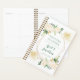 Gardez vos détails de mariage à portée de main et à jour avec ce wedding planner magnifiquement conçu. Doté d'une superbe aquarelle et de roses blanches avec de l'or et des feuilles verts avec une superposition géométrique. Des étincelles dorées parsement également. Personnalisez avec vos propres informations.
