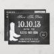Voici un design graphique amusant qui présente un fond de tableau noir et gris. Le design présente deux bottes de cowboy qui conviennent à des thèmes western, country, cowboy, cowgirl, rustique, piétinement de bottes et danse en ligne. Idéal pour les faire-part de mariage, les rappels, les invitations, les rendez-vous, les envois postaux et plus encore. Utilisez-le pour les mariages, les fiançailles, les remises de diplômes, les collectes de fonds, les anniversaires et toutes sortes d'occasions spéciales. Le graphique du cœur à la craie peut être supprimé. Les styles de police peuvent être modifiés. Amusez-vous à faire de ce design le vôtre.