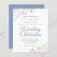 Ces invitations de mariage abordables et abordables sont le choix parfait pour la classe, le style et la beauté sur un budget. Le design présente du texte bleu et gris poussiéreux sur un arrière - plan blanc classique avec des boucles gris argenté et des tourbillons dans les coins. La typographie comprend des lettres de script sophistiquées pour un style à la fois simple et élégant. Merveilleuse façon d'invitation vos amis et votre famille pour partager votre joie dans votre journée spéciale sans casser la banque.