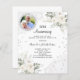 Pour un 60e anniversaire de mariage élégant et romantique. Un arrière - plan blanc décoré de fleurs blanches, de roses, de faux diamants et de dentelle blanche. Personnalisez et ajoutez votre photo, vos noms et vos détails. 1 feuille = 1 invite imprimé bord à bord.