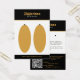 Boucles d'oreilles Dangle moderne Bijoux Display Card a une série de variations à choisir parmi, le rose, bleu, beige et blanc. La bande noire avant et arrière montre le nom de la marque, le site Web au fond noir avant tandis qu'à l'arrière sont l'emplacement de l'entreprise, contact, poignée sociale et code QR ; l'arrière - plan rose avant moyen met en évidence deux ovales pour certains types de boucles d'oreilles comme pendants, goutte ou toute longue boucles d'oreilles ; et à l'arrière milieu même rose arrière - plan à l'avant est la description du produit et bijoux.