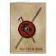 Un rendu 3d d'un bouclier Viking ainsi qu'une hache de combat et une lance superposées sur une vieille image arrière - plan en papier ou en parchemin. Le bouclier est décoré d'un corbeau noir (Corvus corax) peint sur du cuir rouge. Ajoutez votre propre texte. Les méthodes et les matériaux utilisés dans la construction des boucliers Viking variaient selon le lieu et le temps. Cette reconstruction est basée sur des exemples connus. Les boucliers nordiques, contrairement à ceux fabriqués par d'autres groupes, étaient souvent fabriqués à partir de bois relativement doux comme le peuplier et le bouleau. Intentionnellement ou autrement, cela a aidé le bouclier à absorber le coup sans échouer. Et, au lieu d'un morceau de bois solide, des planches horizontales ont été jointes - comme l'indiquent les têtes de boulon visibles à l'avant de ce bouclier - pour empêcher de cracher le long du grain. Afin de réduire davantage la possibilité de dommages, la face du bouclier était souvent recouverte de cuir et une bande de jante en cuir a été ajoutée. Les deux ont absorbé les coups, protégeant le bois sous-jacent. Le patron en forme de bol dans le centre protégeait la main du guerrier.