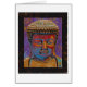 Portrait mixte du Bouddha réalisé par Sheryl Karas. La peinture originale a été faite principalement en acrylique sur toile en rouge, or, noir et bleu.