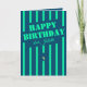 Une magnifique carte de voeux minimaliste bleu foncé ornée de rayures turquoises néon et d'une bougie. Cette carte peut être personnalisée avec le nom du célébrant d'anniversaire.