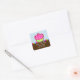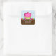 © 2011 Socialite Designs. Autocollant design de cupcake amusant et coloré avec arrière - plan tourbillons et pois.