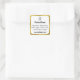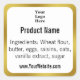 Une image d'affichage est en haut pour remplacer votre logo. Le texte affiché est sous l'image. Vous pouvez modifier le texte pour afficher le nom du produit, une liste des ingrédients, votre site Web ou un message personnalisé. L'autocollant est blanc avec une bordure d'or fausse (pas de feuille). Le texte est noir.