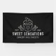 Bannière de boulangerie de cupcake amusante et conviviale avec dessin en ligne d'un cupcake. La bannière est en noir avec des illustrations blanches et du texte. Personnalisez-le pour votre petite boulangerie. Idéal pour les stands d'été de foires artisanales. Conçu pour vous par Blackberry Boulevard.