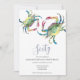 Do Tell A Belle's côtier crabe bouillir 60e anniversaire invitation encadre vos détails de l'événement avec une haute frontière de crabes d'aquarelle bleu dans différentes nuances. Un bleu assorti orne l'arrière de votre invitation. Un choix chic et moderne pour votre fête d'anniversaire ou de plage. Les mots peuvent être changés pour lire 50ème, 70ème, 80ème, Cheers à 60 ans ou ce que vous voulez. Pour en savoir plus sur les modèles d'invitation pour adultes de Victoria Grigaliunas, visitez www.zazzle.com/dotellabelle
