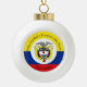 A Digitalbcon Images Design orné d'un drapeau et d'armoiries colombiens dans cet unique "drapeau colombien" ornement céramique de Noël rond. Ce design coloré est livré avec du texte personnalisable en lettres pour convenir à vos propres occasions spéciales. Cela fait un grand souvenir de votre récent voyage en Colombie et ajoute de la couleur à vos décorations de Noël. AJOUTEZ DES ACCESSOIRES OU DES IDÉES DE CADEAUX CORRESPONDANTS DES COULEURS DE COLOMBIE COLLECTION DISPONIBLES À L'ACHAT PAR CE MAGASIN.