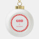 Belle bénédiction rouge et blanc en céramique ornement de Noël de bal de Noël. Dieu nous bénit le texte est entouré de coeurs sur l'arrière - plan blanc.