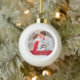 Boule En Céramique Élégant script Notre premier rouge de Noël