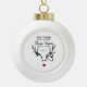 Infirmière Noël Stethoscope Reindeer Custom Ceramic Ornament fait une idée de cadeau amusant pour une infirmière. Les deux côtés de l'ornement sont conçus avec un visage de rennes mignon et un stéthoscope enchevêtré dans ses grands bois. La phrase drôle est "Oh Deer What A Year Nurse Heroes Are Still Here" en noir. Customisé avec l'année. Cliquez sur l'option Personnaliser le modèle et suivez l'invite.