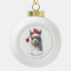 Ajoutez une touche d'humour festif à votre arbre avec ce ornement de boule de Noël en céramique avec un alpaga aquarelle dans un chapeau de Père Noël. Conçu avec une finition brillante et une forme ronde classique, cet ornement est un délicieux mélange de charme et d'esprit de vacances. Personnalisez-le avec un nom, une date ou un accueil de vacances pour en faire un souvenir mémorable ou un cadeau réfléchi pour les amoureux des animaux et les amateurs de Noël.