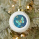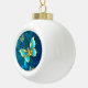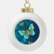 Boule En Céramique Papillons d'or sur un Arrière - plan bleu