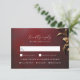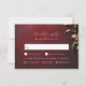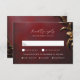 RSVP dans le style avec cette carte de réponse Masquerade Ball. Le design luxueux présente un arrière - plan rouge à texture complexe, orné d'un feuillage à effet 3D faux doré, créant un magnifique thème Mardi Gras et costume mariage.