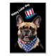 Petit chiot Bouledogue français avec foulard Amérique et souhaite une bonne Fête du Travail. Le Bouledogue français est un petit molosse très agile, sportif et éveillé. Le Frenchy est un clown parmi les races de chiens et extrêmement adorable. Le Bully est très aimé des enfants et un chien de famille fidèle. En raison de sa taille, il est également facile à vivre en appartement, bien sûr il aime sa promenade régulière.
