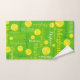 Des balles de tennis sportives sur un court de gazon vert arrière - plan conçu à l'origine nom de texte personnalisé set de serviettes. Cette serviette à motif sport en raquette typographique a des balles de tennis jaunes et blanches, et du texte jaune, blanc et vert et peut être customisé avec votre propre nom, dit actuellement Meghann. Contactez-moi pour des demandes de nom plus long. Art et design originaux par Sarah Trett pour www.mylittleeden.com