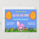© Sunny Mars Designs - Joli lapin de Pâques et des oeufs dans l'herbe Invitations - Ces invitations cool, coutume, de chasse aux oeufs de Pâques présentent un vecteur de dessin animé illustrant un mignon petit lapin rose de Pâques se cachant dans l'herbe avec des oeufs colorés de Pâques de chaque côté de lui.