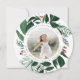 Carte photo de vacances élégant dans une forme arrondie unique, dispose d'une photo préférée entourée d'un riche feuillage botanique vert de forêt et de minuscules baies rouges sèches. Personnalisez-vous avec un accueil de vacances personnalisé (montré avec "laissez le ciel et la nature chanter"), et vos noms courbés autour de la photo.