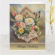 Un beau bouquet dans une maison d'oiseaux apporte des souhaits pour un Joyeux Anniversaire. A l'intérieur, vous trouverez un verset de célébration et des voeux de bonheur, d'amour et de rire.
