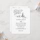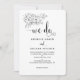 Un faire-part de mariage moderne et élégant "we do" avec une élégante calligraphie swash annonçant, "we do", avec une petite police serif classique pour les détails lui donnant un look minimaliste, formel, noir et blanc invitation avec une mise à niveau moderne. Un bouquet blanc dessiné à la main et animé est accroché à l'angle gauche au-dessus, "on-do".