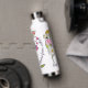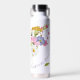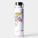 Un délicat bouquet de fleurs printanières colorées est présenté à l'avant et à l'arrière de cette bouteille d'eau. Le texte dit : "Le bonheur fleurit de l'intérieur"
