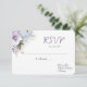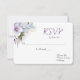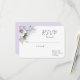 Bouquet floral aquarelle douce lavande et bleue sur fond blanc pour RSVP de mariage. Le texte peut être modifié.