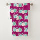 Serviette de bain conçue avec un motif sur un arrière - plan magenta. Joli bouquet de fleurs pastel aquarelle. Les fleurs, les feuilles et les sprigs sont rose pastel et vert. Créé avec de la peinture aquarelle et numérisé. Frais et estival.