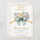 Cette élégante invitation au mariage présente un bouquet floral pastel attaché à un arc vert tendre, accentué de confettis dorés et de bouquet festif. Un design romantique et intemporel, parfait pour les couples qui souhaitent séjourner dans un mariage d'inspiration jardin, classique ou design. Célébrez votre journée spéciale avec cette oeuvre d'art florale sophistiquée.