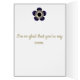 J'ai créé un design d'art fractal, puis j'en ai découpé une forme de fleur. La superposition de différentes tailles de la forme de fleur sur un motif vert en forme de tige a créé un bouquet floral unique. Ajouter un message d'appréciation pour votre mère fait de ce choix un bon choix pour une carte de Fête des Mères, une carte d'anniversaire, un carte de remerciements, ou une autre occasion quand vous voulez montrer à votre mère que vous êtes heureux qu'elle soit votre mère. Le premier message sur la carte est "Célébrer la meilleure mère pour moi". A l'intérieur de la carte se trouve le message "Je suis si content que ta mère." Les couleurs des fleurs et de la carte sont le bleu et l'or.