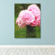 Les pivoines s'assoient dans un grand vase en verre, joliment rose et moelleux. Entièrement personnalisable pour vous de personnaliser comme vous voulez!