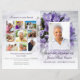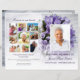 En programme funéraire en mémoire d'amour, avec une belle photo de bouquet violet tout au long. Comprend l'espace pour une nécrologie, l'ordre de service, les poèmes et plus pour créer un programme magnifique pour votre être cher. Tout le texte est facile à éditer et entièrement personnalisable. Ce programme funéraire imprime à deux côtés sur une seule feuille de papier de format Lettre (8,5 x 11 pouces). Une fois plié, cela crée un livret avec 4 pages de taille demi-lettre (8,5 x 5,5 pouces par page).