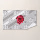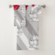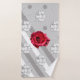 Bouquet blanc moderne et rose rouge sur rayures et points gris