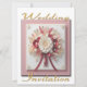 Faire-part de mariage avec un bouquet rose de fleurs et de rubans - L'arrière - plan de carte est rose. Vous pouvez modifier le verso de la carte pour obtenir des informations mariages pertinentes à la cérémonie ou au schéma de couleurs ou pour vous rendre au lieu. L'écriture est en Or pour aller avec les couleurs rose et or de la carte.