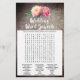 Ce bouquet de fleurs rustiques "il a dit qu'elle a dit" jeu de quiz est parfait pour une douche à thème de campagne fleurie. Le devant de la carte de jeu comporte "il a dit qu'elle a dit", ce qui est un quiz amusant sur la mariée et le marié. Le verso de la carte contient un mot de recherche avec des mots et des phrases mariages. Le design se compose d'un élégant agencement de pivoines d'aquarelle rose vif sur un arrière - plan texturé en bois. Personnalisez la carte de jeu avec le nom des épouses et la date du wedding shower.