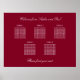 Burgundy 5 Table Mariage Seating Chart Poster, s'il vous plaît personnaliser les noms du couple et les noms des invités ainsi que l'un des autres textes que vous souhaitez personnaliser. Une affiche élégante avec un élégant texte blanc sur un arrière - plan bourgeois et riche.