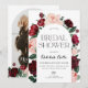 Une jolie invitation à la douche nuptiale bordeaux et rougeâtre en arc de cercle.