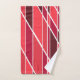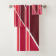 Ce kit de serviettes a un design géométrique dans les tons bordeaux et blancs. Amusant et lumineux.