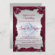 Invitations de mariage en Bourgogne et en Argent. L'avant de l'invitation est orné d'une bordure en marbre bordeaux et d'une pointe d'argent autour du bord de la Faire-part de mariage, d'un arrière - plan argenté et d'un beau rose au centre de l'invitation. Au centre de l'invitation se trouve l'invitation à se joindre, l'événement, la personne à honorer, les noms de Mariée et de Salle, la date et l'heure, les détails du lieu, RSVP, et les détails du registre écrits dans un mélange de typographie serif classique et d'écriture élégante lettrée à la main dans une couleur bordeaux plus légère.Le dos de l'invitation est un arrière - plan Argent avec les initiales de mariée et groom au centre de l'invitation dans le centre de l'invitation couleur bordeaux de l'avant de l'invitation. Vous pouvez modifier le libellé, l'arrangement, les polices, les couleurs, la taille et plus en utilisant la case à onglets à droite de la conception, qui dit "Personnaliser". Parfait pour n'importe quel moment de l'année Faire-part de mariage. Faites-moi un message par le bouton ci-dessous si vous avez besoin d'aide pour personnaliser cette carte. Remarque : Je ne peux modifier que avant l'achat, après l'achat, il ne peut pas être modifié. Merci pour visiter le magasin, d'autres dessins à venir bientôt.