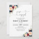 Bourgogne et Marine Nous sommes engagés Invitation. Cette invitation à la douche de mariage élégante et élégante présente de magnifiques aquarelles peintes à la main de la Bourgogne et de la Marine. Trouvez les articles correspondants dans la Collection Florale de Bourgogne et de la Marine.