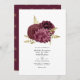 Elégant faire-part de mariage bordeaux et or personnalisable selon vos spécificités. Idéal pour un thème ou un mariage de jardin. Le code QR au verso dirige vers votre site mariage où les gens peuvent en savoir plus et rsvp.