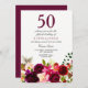 Burgundy Flowers 50th Birthday Party Invitation Collection correspondante à Niche et Nest store. Boho chic bordeaux rouge aquarelle blanche florale Belle aquarelle peinte à la main
