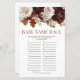 Bourgogne Floral Fleurs Nom Race Baby shower Jeu